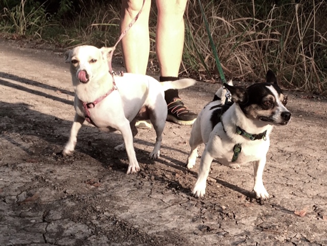 Audrey (white & apricot) and Daisy (tri-color), the two TERRORS of the universe. But not of Hild.
